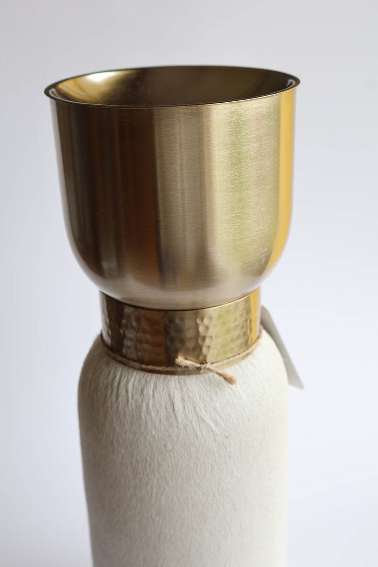 Candelero alto de piel con dorado