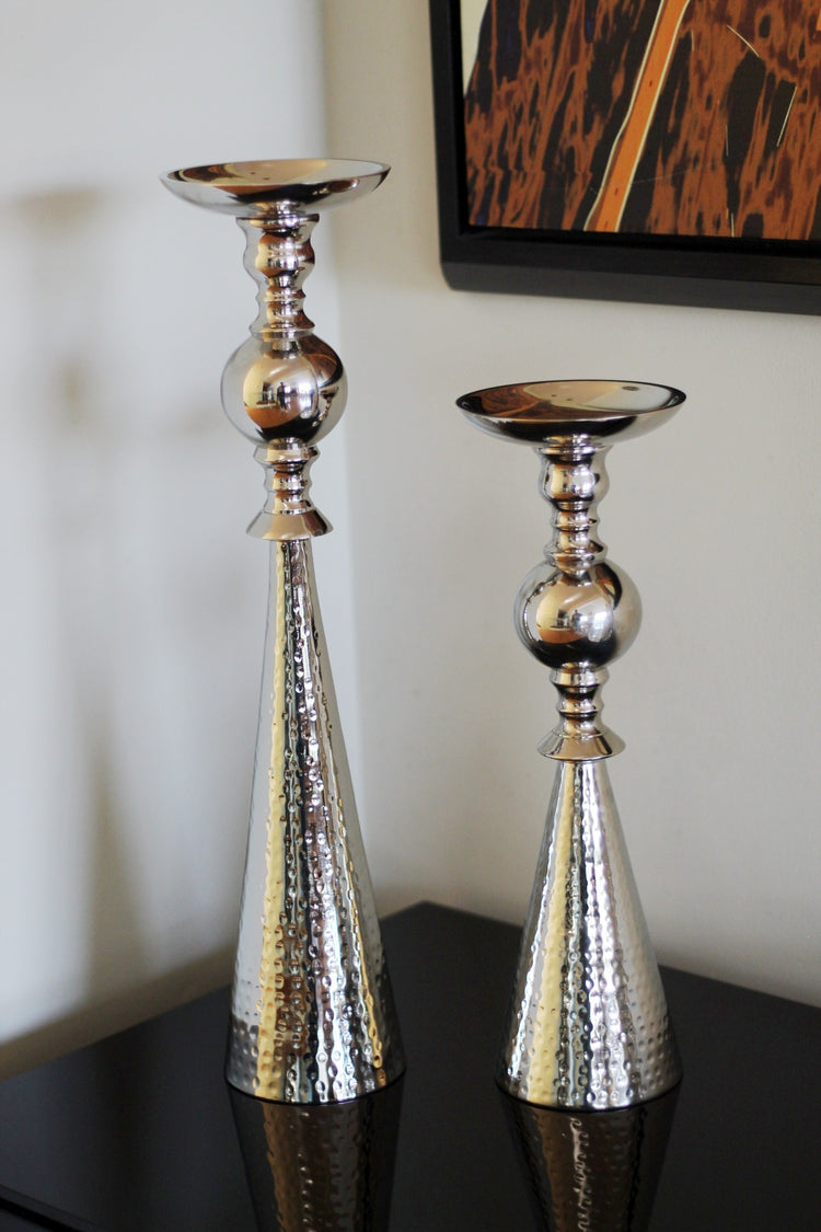 Candelero Monroe plateado (para vela o pilar) set de 2 unidades