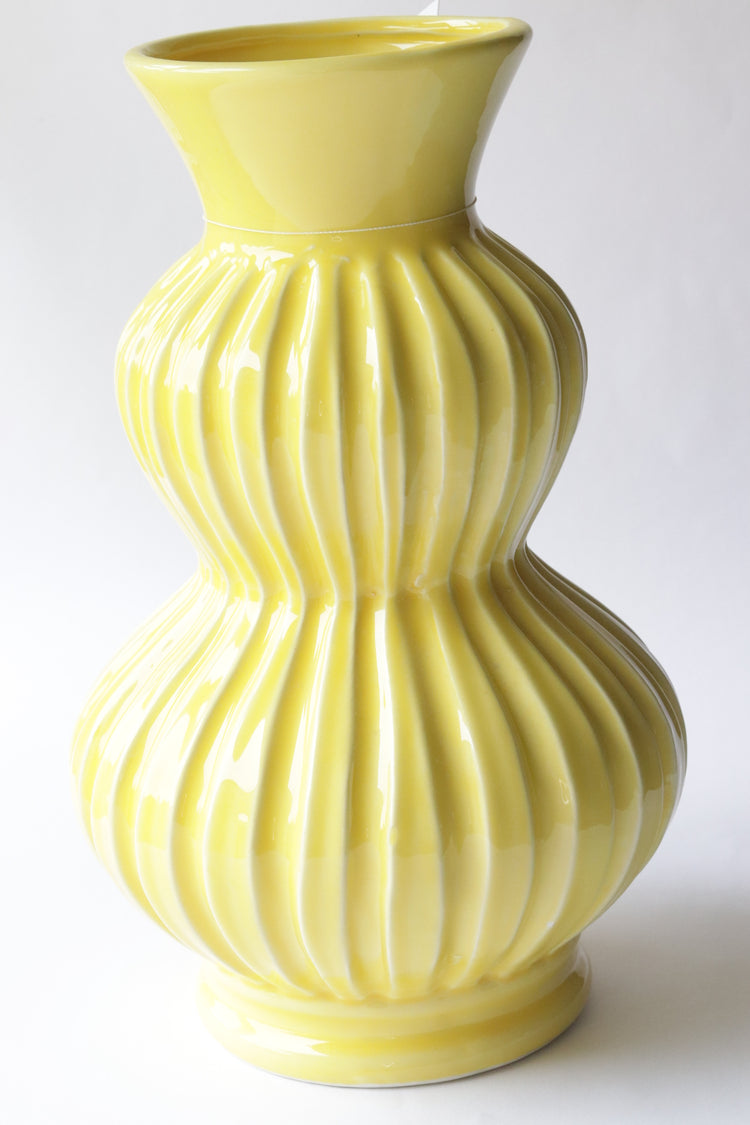 jarron/florero de 2 bolas amarillo estriado