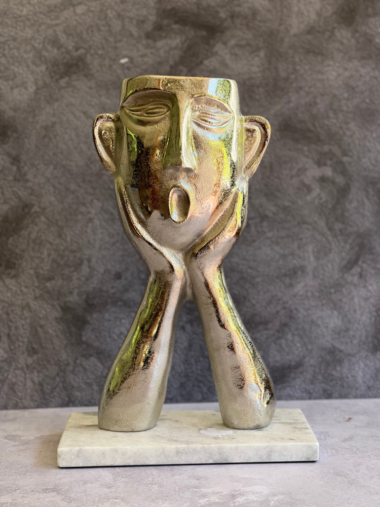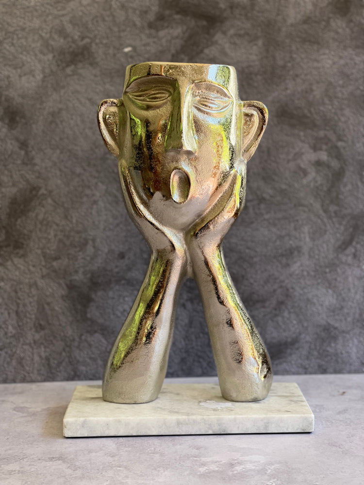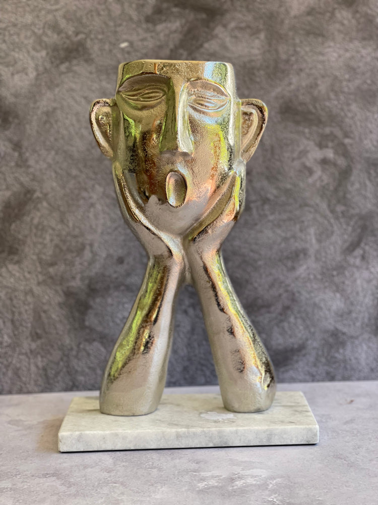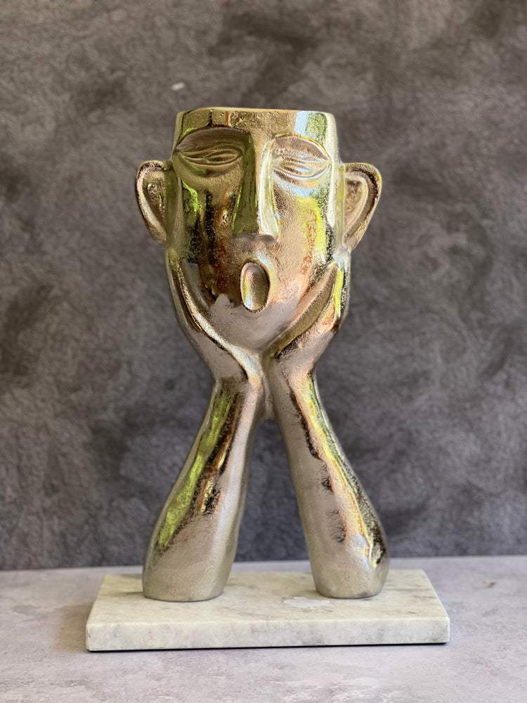 Escultura "Oh Wow" de pewter y marmol
